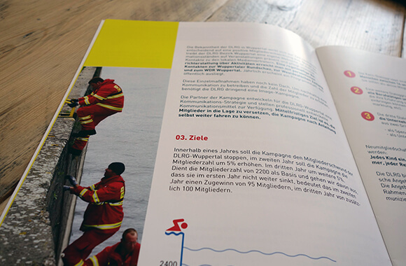 Für die DLRG Wuppertal haben wir ein Proposal gestaltet in Zusammenarbeit mit Königsfilm, die dafür den redaktionellen Beitrag erarbeitet haben. Inhaltlich geht es um Maßnahmen zur Gewinnung von neuen Mitgliedern für das Ehrenamt in der DLRG.