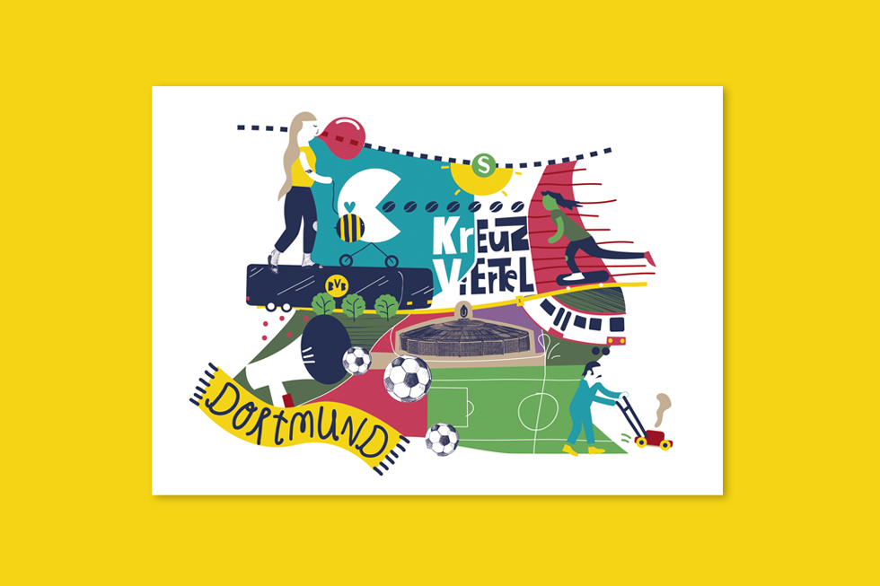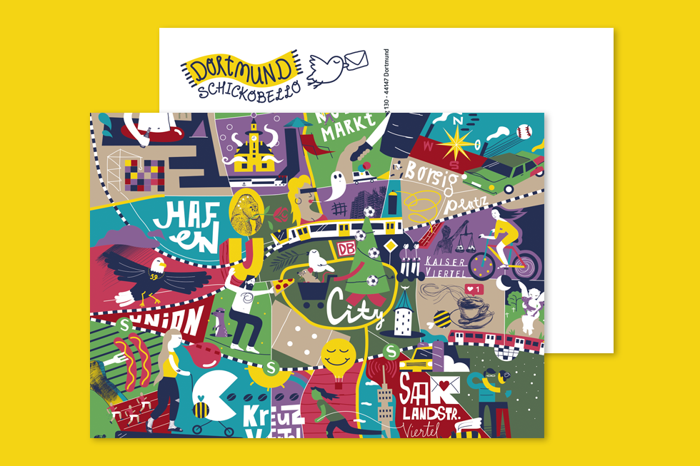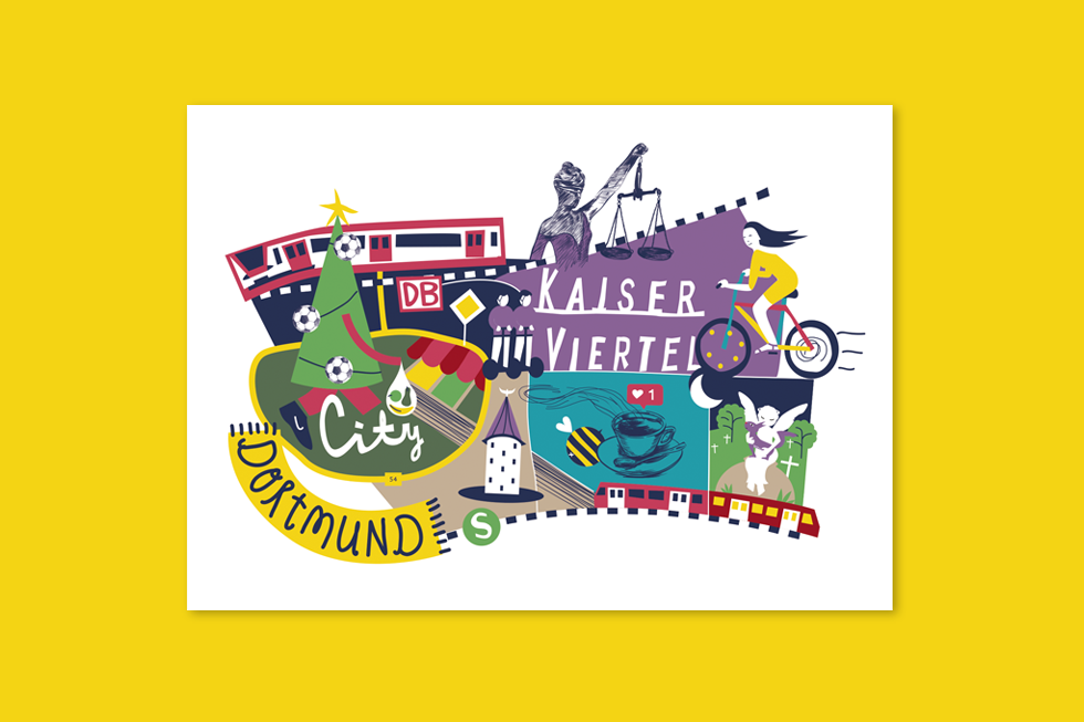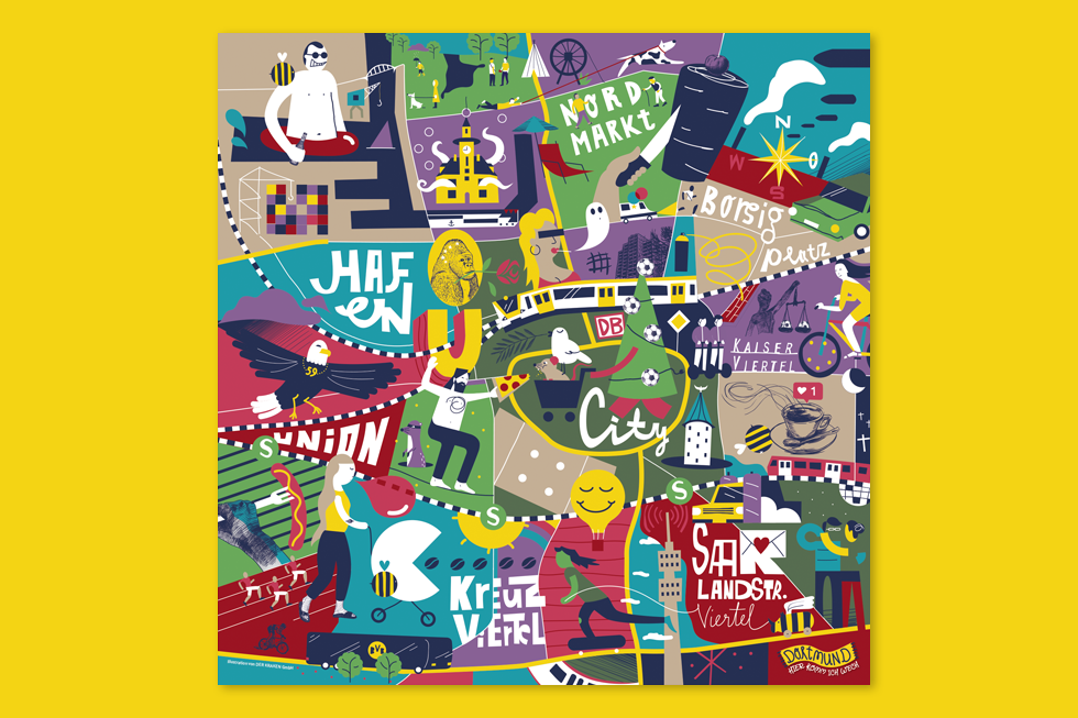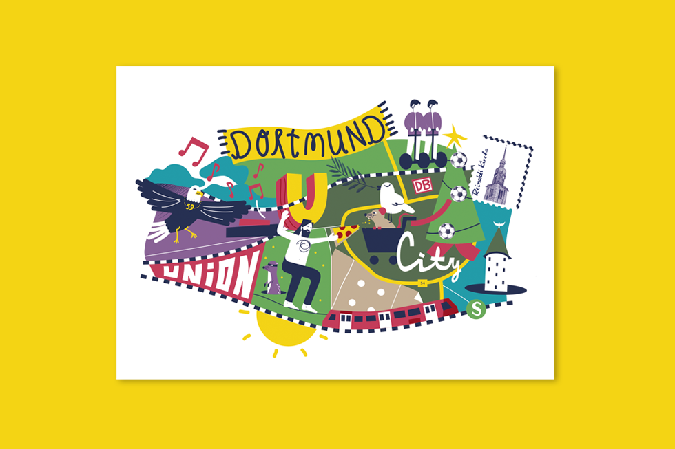 Ein einzigartiger Stadtplan ist entstanden. Eintönige Standard-Postkarten, die der Stadt nicht gerecht werden, gibt es zuhauf. Etwas Buntes und Echtes muss her! Deshalb sind wir stolz, unseren einzigartigen Dortmunder Stadtplan vorzustellen: mit viel Humor und noch mehr Farbe zeigen wir die Stadt und ihre unterschiedlichen Viertel, wie sie wohl jeder Dortmunder wirklich kennt und liebt. Umgesetzt haben wir ihn als 7-teilige Postkartenserie und als quadratisches Poster im Format 59,4 x 59,4 cm. Zur Zeit könnt ihr diese Schmuckstücke bei uns vor Ort erwerben, bei Interesse schreibt uns gerne eine Mail an info@der-kraken.de, oder kommt direkt vorbei!